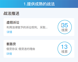 系統(tǒng)提供成熟的戰(zhàn)法,此些戰(zhàn)法是在其他檢察院成功運(yùn)用的戰(zhàn)法,在實(shí)踐中檢驗(yàn)的,也支持用戶修改內(nèi)容適合本地區(qū)特點(diǎn)。